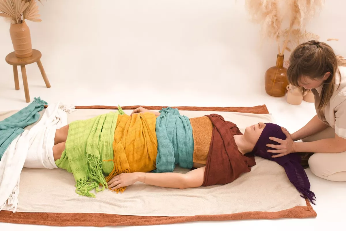 Le Rebozo utilise un foulard long et doux pour envelopper, soutenir et masser le corps.À travers des mouvements de balancement, d’étirement et de compression, il permet une détente profonde.